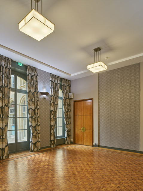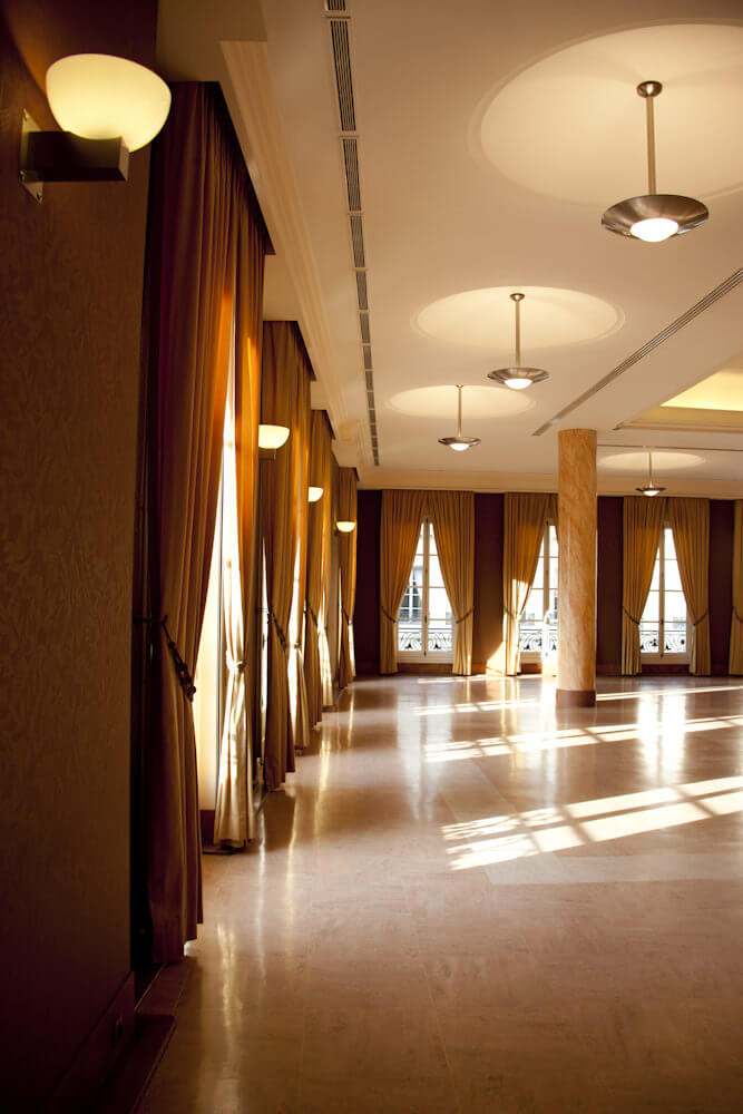 With its 530 m² floor space, 4.56-meter-high ceilings, and view of the private garden, the room 8 is the Maison de la Chimie’s signature reception space. It is also one of the finest examples of what a well-chosen light fixture can do in a large space.