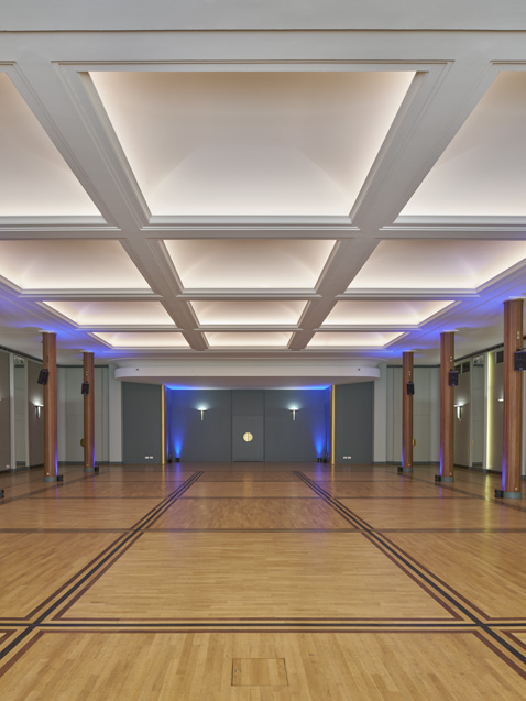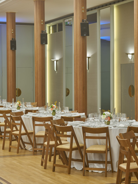 The No. 650 wall lights punctuate the walls with regularity. Their satin glass captures and redistributes light in soft halos, creating an ambient warmth that transforms this prestigious space into a living environment. Seminars, gala dinners, exhibitions: whatever the configuration, the lighting remains just right.