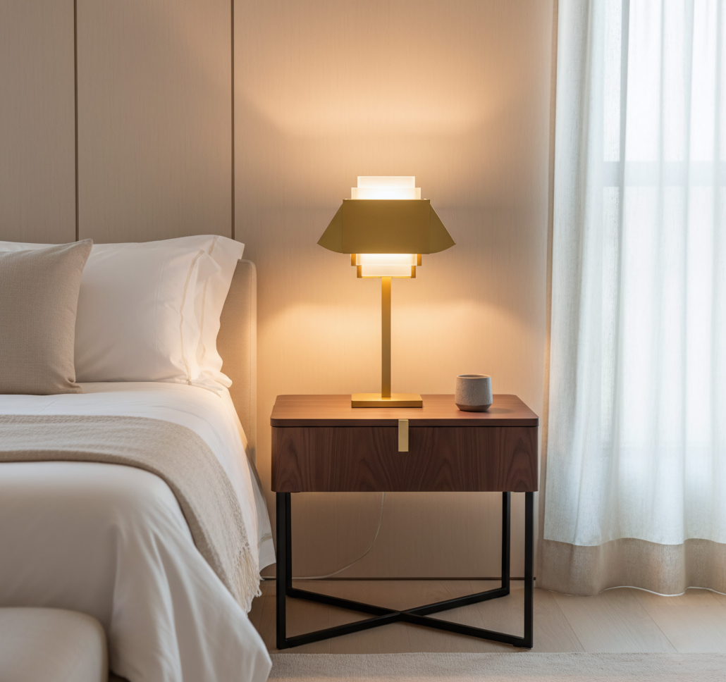 Verres biseautés coulissants, volets ouvrants, cette lampe est très représentative du travail artisanal de haute précision effectué dans nos ateliers.